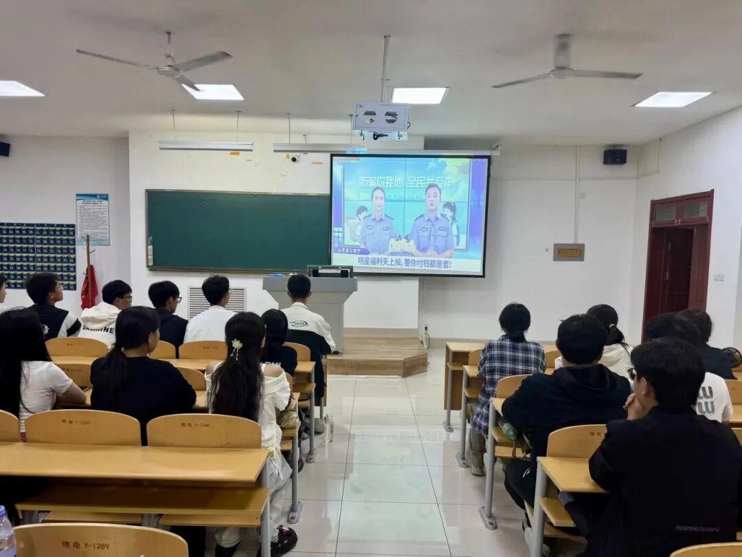 活动中,学院组织新生集中观看由教育部思政司、公安部刑侦局联合主办的反诈直播。直播里,反诈民警聚焦学生群体高发电诈类型,深入浅出剖析刷单返利、网络游戏虚假交易、冒充公检法、虚假购物服务等常见诈骗形式。民警特别警示,切勿被高薪招聘诱惑赴境外涉险,严禁出租出售“两卡”、协助架设GOIP与VOIP设备或帮人取现买金,避免沦为“电诈工具人”。直播结束后,各班级随即开展讨论交流,同学们积极分享观看感悟与过往遭遇的疑似诈骗经历。