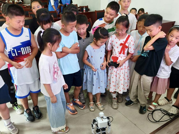 在平原县莲花池社区暑托班,“红心向党”剪纸活动别开生面。孩子们在宣讲团成员指导下,剪出纸杯火箭、五星等作品,将科技元素与红色符号巧妙融合。智能机器人“星宝”的登场更是点燃全场热情,它灵活演示着机械臂操作,讲述“两弹一星”元勋的故事,成为传播科学精神的“萌系使者”。“我以后也要造会跳舞的机器人!”一名小男孩操控着机器人兴奋地喊道,科技梦想的种子在欢声笑语中悄然萌芽。