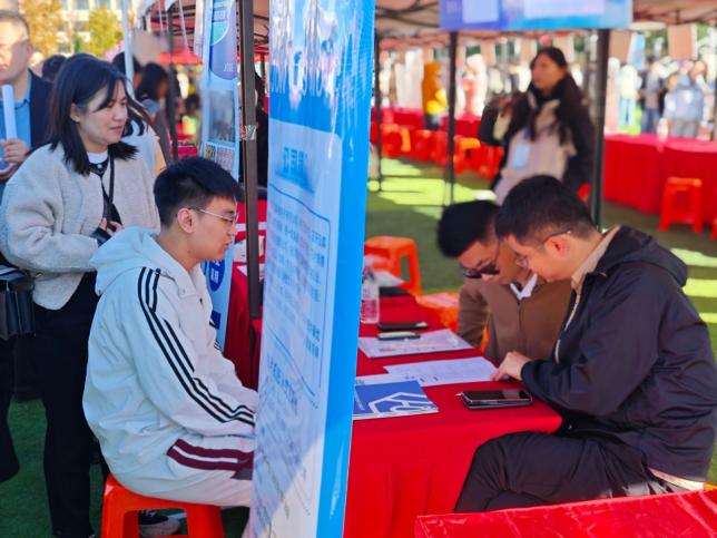 毕业生们手持精心准备的多份简历,穿梭于各个招聘摊位之间,积极了解企业需求、岗位设置和职业发展等信息。低年级的学生们也认真了解企业招聘信息,主动咨询相关问题,为职业规划做准备。同时我们由学生党员、团员、学生干部组成的“就业志愿服务队”,现场为毕业生提供简历打印、流程指引等服务。针对请假未参加的毕业生,志愿者们及时收集现场相关岗位信息,第一时间发送给毕业生,助力毕业生与企业高效对接。